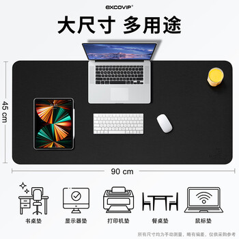 宜适酷(EXCO)90X45鼠标垫超大号办公桌垫 防水皮革书桌垫写字垫电脑垫键盘皮质桌布垫子双面游戏垫 黑色3764