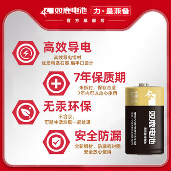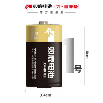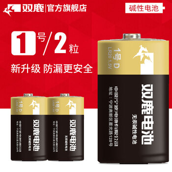 双鹿 1号碱性电池2粒卡装 适用于热水器/煤气燃气灶/手电筒/电子琴/收音机 LR20/D型 2粒卡装