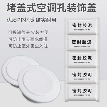 宜百利 空调孔洞装饰盖 空调孔封胶泥堵盖板墙孔盖水管遮丑 密封胶泥*5+装饰圈*2+装饰盖*2堵盖式7123