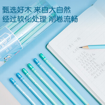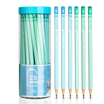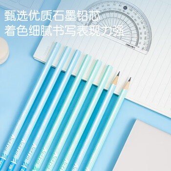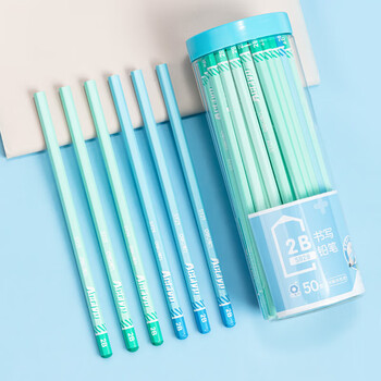 得力(deli)儿童2B写字铅笔书写绘画考试练字50支/桶清新蓝绿S929学生开学文具
