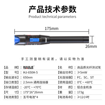 海乐(Haile)HJ-650H-5 5mw镭射光纤测试笔 打光笔 红光笔 5公里*1