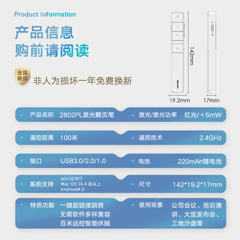 得力(deli)激光笔 百米远控教师专用ppt超链切换 激光笔教鞭/无线演示器课件笔 红光激光翻页笔 黑色 2802PL