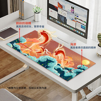 飞遁LESAILES国潮锦鲤超大鼠标垫 锁边加厚办公电竞电脑键盘桌垫 橙色900*400*3mm