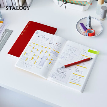 STALOGY笔记本 日本进口本子 368页高颜值记事本 全年册学生考研日记本 2025日程本B6红色