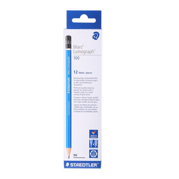 施德楼(STAEDTLER)9H素描铅笔 100经典蓝杆专业美术手绘速写专用初学者考试画画工具12支/盒