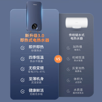 飞利浦(PHILIPS)即热式电热水器 电即热8500W速热无极变频智能恒温 无胆免储水AWH1028/93(85HB)