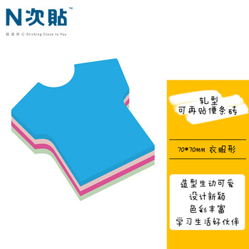 N次贴(STICKN)160张4色可爱造型便利贴异形便签纸百事贴记事贴70*70mm 衣服形33029