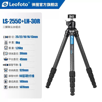 徕图(Leofoto) 三脚架云台 碳纤维手机相机微单单反摄影摄像轻便旅行风光三脚架云台套装 LS-255C+LH-30R