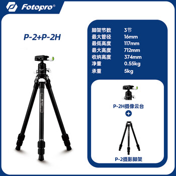 富图宝 Fotopro P-2+P-2H 碳纤维轻量化摄影摄像三脚架 主播直播支架 o.49KG/5KG