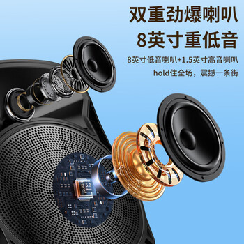 索爱(soaiy)8吋广场舞音响大功率便携式户外重低音蓝牙k歌专用大音量移动拉杆音箱室外演出设备单话筒ST-809WM