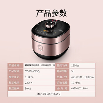 苏泊尔(SUPOR)电压力锅 SY-50HC35Q 5升 ZMD安心系列 精钢球釜鲜呼吸100压力锅 IH