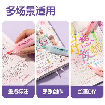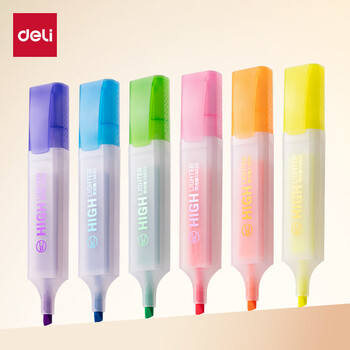 得力大容量扁杆黄色荧光笔 学生考试复习划重点标记笔办公水性记号笔 手账涂鸦绘画可用 S625