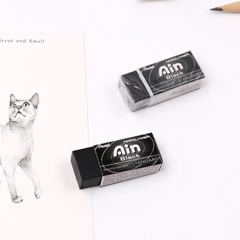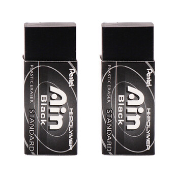 派通(Pentel )Ain系列黑色橡皮擦学生绘图干净聚屑橡皮ZEAH06AT 2块装