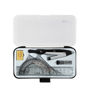 得力(deli)【全网低价】圆规套尺套装绘图考试(圆规+铅芯+橡皮+直尺+三角尺*2+量角器)7件套开学文具礼物