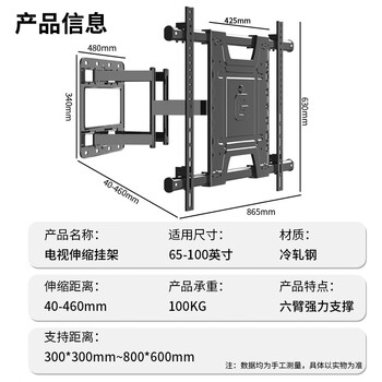 创颢 (50-100英寸)电视机挂架伸缩旋转六臂壁挂墙电视支架适用小米海信荣耀雷鸟通用电视机支架