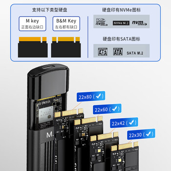 朗科(Netac)M.2 NVMe/SATA双协议移动硬盘盒USB3.1接口SSD固态硬盘外置盒笔记本电脑M.2盒子 WH61 CtoA