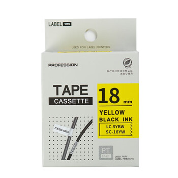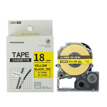 绘威 SC18YW标签带 不干胶标签纸标签色带 标签机色带适用爱普生/锦宫标签打印机 黄底黑字18mm*8m