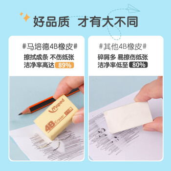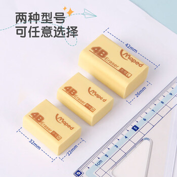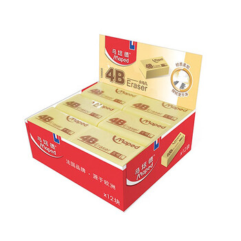 马培德(Maped)大号4B橡皮12块装 儿童橡皮擦无屑干净小学生专用美术绘图考试橡皮擦4b黄色开学文具108800CH