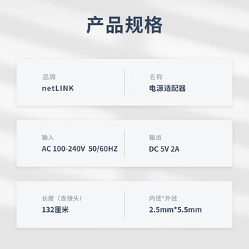 netLINK HTB-P52 光纤收发器电源适配器 DC5V2A 接头规格:5.5mm*2.5mm 一个