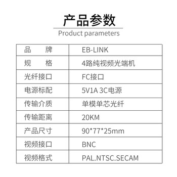 EB-LINK EB-RS-4V视频光端机4路纯视频数字模拟高清监控光纤延长器单模单芯FC接口