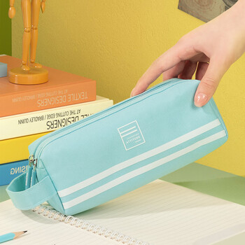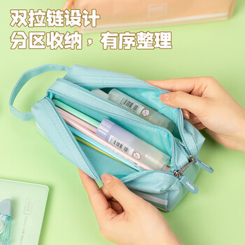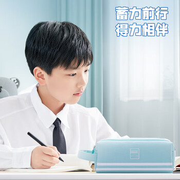 得力(deli)大容量多层学生笔袋 手提式铅笔盒/多功能牛津布铅笔收纳袋文具袋男孩女孩 冰蓝开学必备
