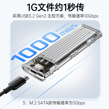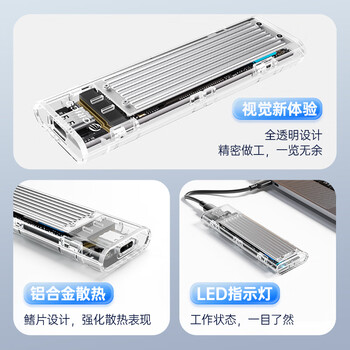 奥睿科M.2 NVMe固态硬盘盒10Gpbs Type-C接口SSD外置盒 适用笔记本电脑 透明金属/银色 TCM2-C3