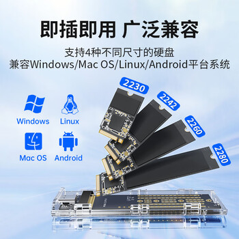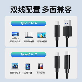 产品本体*1,C to C数据线 0.5m*1(10Gbps),A TO C 数据线 0.5m*1(10Gbps),固盘螺柱,螺丝刀,散热胶垫,说明书,感谢卡