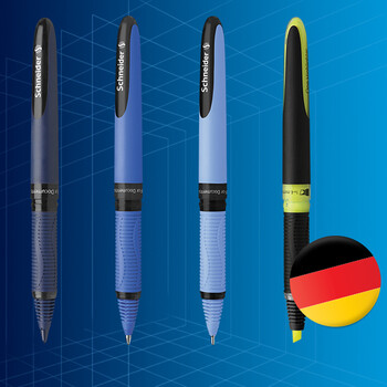 施耐德(Schneider)中性笔套装 大容量直液式超顺滑签字笔荧光笔 办公开学必备用品学生考试用水笔 星际4支套装26579