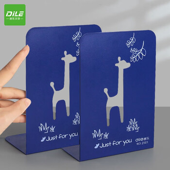 递乐 金属铁镂空书立夹/学生书立架/书夹/书靠/书挡/书板创意办公文具用品2片/副 2501长颈鹿款