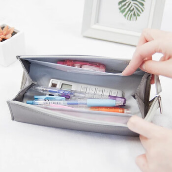 国誉(KOKUYO)学生用大容量铅笔盒直立对开式竖款笔袋文具盒收纳盒深灰WSG-PC22-DM