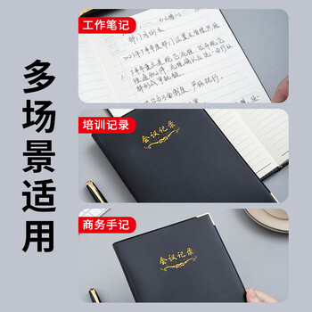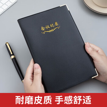 晨光(M&G)文具会议记录本皮面商务a5笔记本本子软皮记录记事本 100张厚日程本办公用品黑1本APYLK487
