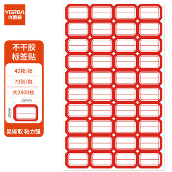 优必利 2800枚28mm×20mm不干胶标签贴纸自粘性标贴 口取纸 40枚/张 70张/包 3465红色