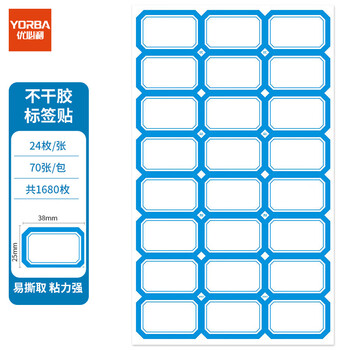优必利 1680枚38mm×25mm不干胶标签贴纸自粘性标贴 口取纸 24枚/张 70张/包 3467蓝色