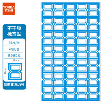 优必利 2450枚28mm×22mm不干胶标签贴纸自粘性标贴 口取纸 35枚/张 70张/包 3466蓝色