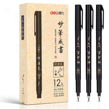 得力(deli)黑色小楷纤秀笔毛笔练字笔 软笔妙笔成书签名学生成人书法练习笔开学礼物 12支/盒 开学文具