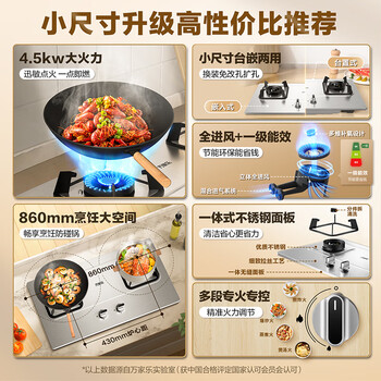 万家乐燃气灶【双高火KA032】立体全进风灶具4.5kW火力不锈钢面板天燃气灶台嵌两用家用猛火双灶天然气灶