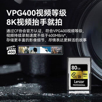 雷克沙(Lexar)80GB Cfexpress Type A存储卡 VPG400 8K录制 索尼相机专用cfa卡 读900MB/s(GOLD)