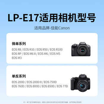 LP-E17相机电池*2,电池保护盖*2,LP-E17充电器*1,Type-C充电线*1,产品保修卡,包装盒