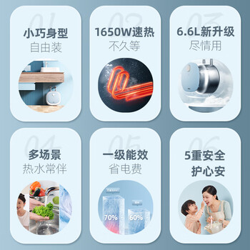 万家乐【安全耐用FH1(S)】 6.6升安全防漏电小尺寸上出水一级能效1650W速热 厨房小厨宝电热水器
