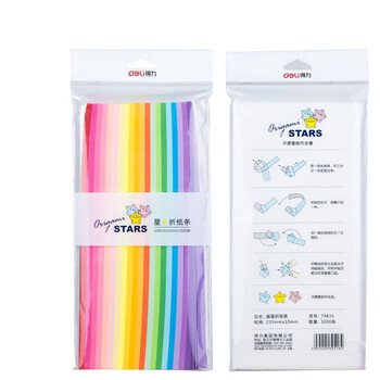 商品名称:得力(deli)1000条/20色星星折纸 手工彩纸幸运星许愿星纸条 74835 产品尺寸:235*10*130