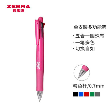 斑马牌(ZEBRA)五合一多色笔(0.7mm四色圆珠笔+0.5mm自动铅笔)黑蓝红绿学生商务办公签字笔B4SA1 粉色杆