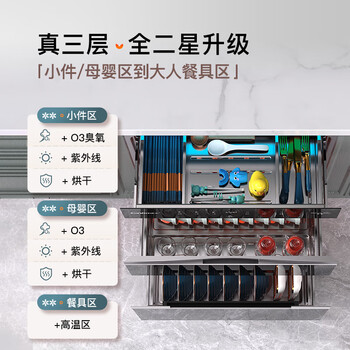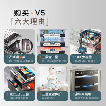 康宝(Canbo)三层二星不锈钢消毒柜嵌入式家用消毒碗柜紫外线高温餐具奶瓶大升数巨量110-V5磐石