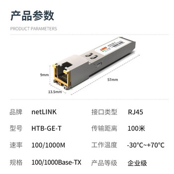 netLINK 千兆电口模块 光转电口模块 SFP光电转换模块100米 适用各大品牌国产设备 1只 HTB-GE-T