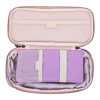 国誉(KOKUYO)淡彩曲奇双拉链大容量文具盒多层笔袋收纳包210*93*30(+40)mm粉/紫WSG-PCC12-2