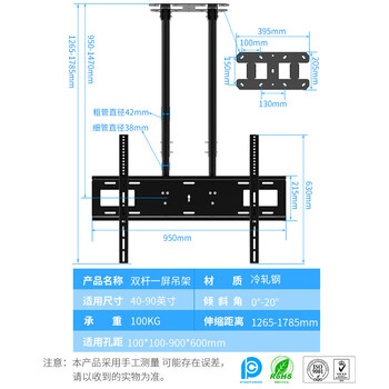 ProPre (双杆1屏)40-90英寸可升降重载大屏液晶吊架激光电视广告机吊顶挂架监控器显示屏拼接吊装支架