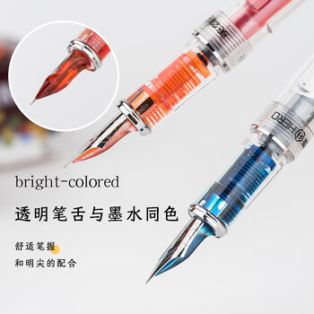 英雄(HERO)钢笔709心水透明铱金钢笔学生墨水笔练字笔透蓝