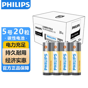 飞利浦(PHILIPS)碳性5号电池20粒干电池适用遥控器/钟表/电子称/计算器/闹钟/耳温枪五号电池AA R6