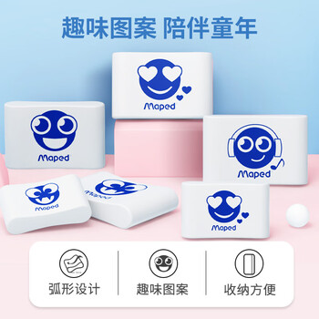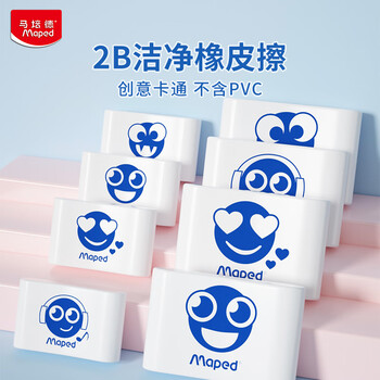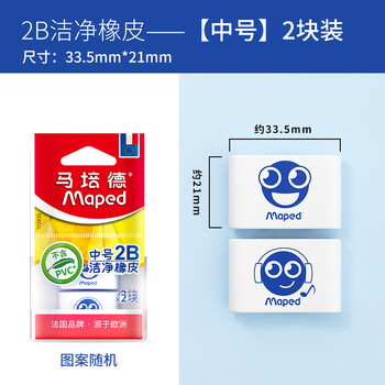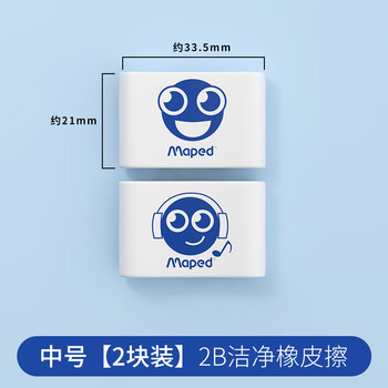 马培德(Maped)洁净橡皮2B中号2块装 考试橡皮擦儿童无屑干净小学生专用卡通橡皮擦铅笔考试文具高颜值112930CH