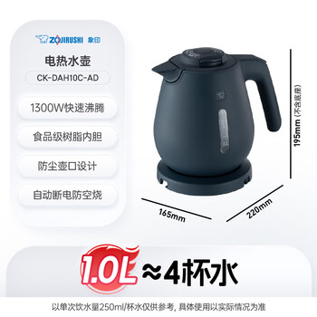象印(ZO JIRUSHI)电热水壶家用 快速沸腾防尘口设计 1L容量 CK-DAH10C-AD 深蓝色