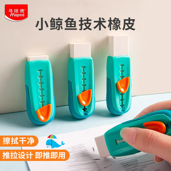 马培德(Maped)小鲸鱼创意橡皮擦 可伸缩推拉式橡皮 学生儿童考试绘图美术学习专用橡皮 012000CH【绿色/块】